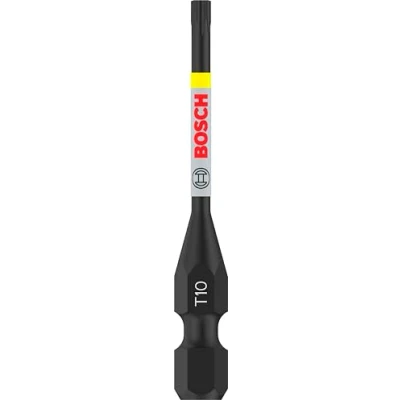 Up to 50x more robust than a Bosch 2607001528 Extra Hard Bit Highly efficient for installers, electricians, metalworkers, and woodworkers: Robust 1/4" Impact rated Hex shank for use in impact driver and drill driver For driving T screws efficiently, eg when installing all types of panels, equipment, and fixtures Scope of delivery: Bosch PRO Torx Impact Bit, T10, 55 mm, 2 pcs, Weight: 0.0330693393 Pounds, Manufacturer: Bosch