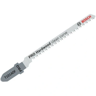 General description The Bosch PRO Hardwood T101AOF Jigsaw Blade is designed for clean, snag-free curved cuts in hardwood and hard laminate flooring boards. This blade ensures precision and efficiency, making it an essential tool for any woodworking project. Technical specifications Blade length: 83 mm Maximum cutting thickness: 15 mm Material: High-speed steel (HSS) tooth strip bonded with a high-carbon steel (HCS) body Compatibility and accessories Fits all T-shank jigsaws