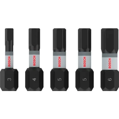 Up to 50x more robust than a Bosch 2607001528 Extra Hard Bit Highly efficient for installers, electricians, metalworkers, and woodworkers: Robust 1/4" Impact rated Hex shank for use in impact driver and drill driver For driving H screws efficiently, eg when installing all types of panels, equipment, and fixtures Scope of delivery: Bosch PRO Hex Impact Bit, H3, H4, H5(x2), H6, 25 mm, 5 pcs, Manufacturer: Bosch