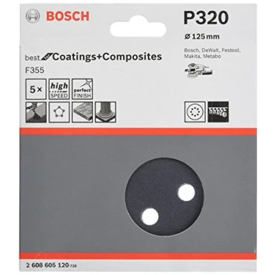 Bosch 5x PRO Plastic and Hard Stone F355 Sanding Disc (for Concrete, stone, Ø mm, Grit 320, Professional Accessory Random Orbital Sander)