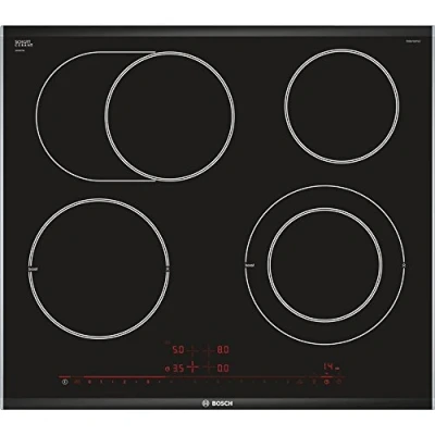Bosch 8 Series pkn675dp1d Integrated Ceramic Black, Stainless Steel Hob Plate (Built in, Ceramic, Glass and Steel, Touch, Top Front)