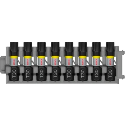 Up to 50x more robust than a Bosch 2607001528 Extra Hard Bit Highly efficient for installers, electricians, metalworkers, and woodworkers: Robust 1/4" Impact rated Hex shank for use in impact driver and drill driver For driving T screws efficiently, eg when installing all types of panels, equipment, and fixtures Scope of delivery: Bosch PRO Torx Impact Bit, T30, 25 mm, 8 pcs, Weight: 0.10582188576 Pounds, Manufacturer: Bosch