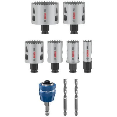Features: Lasts up to 2x longer than a standard HSS M3 Hole Saw Long Life cutting holes in various materials Bi-Metal with 8% cobalt HSS offers a long life and high efficacy when processing metal and other tough materials. Bosch Power Change makes removing material plugs and changing hole saws easier and faster. For use with the Bosch Power Change Plus keyless arbor: offering accuracy and robustness Electricians and plumbers find hole saws invaluable for installing pipes, electrical boxes, and recessed lighting. Ideally, they want to carry just one kind of hole saw for the challenges and materials that interior installation presents. That's why we have the PRO Multi Material. The PRO Multi Material Hole Saw has enhanced tooth design for fast and smooth cuts and high-cobalt HSS alloy teeth for longevity. It tackles steel cladding and drywall effectively. The Power Change plus makes changing hole saws and pilot drill bits faster and removing material plugs easier.