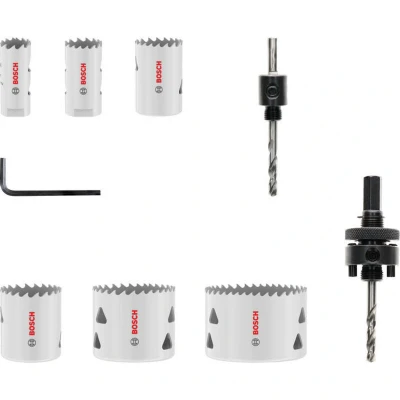 Bosch 9X Multi Material Threaded Hole Saw Set (for Steel, Drywall, Ø 20, 25, 32, 38, 51, 64 mm, Professional Accessory Drill Driver)