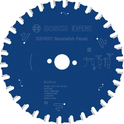 Features: Designed for cutting metal sandwich panel Long Life cutting metal sandwich panel Exceptional durability is built into accessories with Bosch Carbide Technology. It combines hard and robust tungsten carbide grains with our own advanced manufacturing techniques. Extra coating for increased performance and durability. The coating reduces friction and protects the circular saw blade from heat and corrosion. Bore works with or without reduction rings to fit different sizes Working on an industrial construction site usually means cutting metal sandwich panels daily. This building material can be a challenge and most standard blades you use will get dull very fast. Not the EXPERT Sandwich Panel Circular Saw Blade. We made it to help you get clean cuts in sandwich panels for a long time. The EXPERT Sandwich Panel is a circular saw blade for the jobs you need to get done with your handheld circular saw. It will help you cut through metal sandwich panels – effectively, time and
