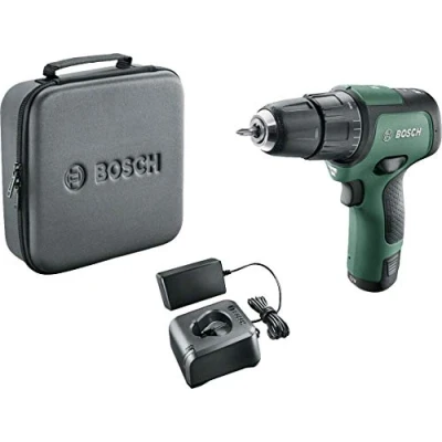 The tools from the Bosch Easy range – the practical helpers for your everyday projects Easy to use: Switching between screwing/unscrewing, drilling, drilling with percussion by selecting the corresponding icon by turning the adjustment ring Sturdy: Powerful and lightweight drill thanks to its compact and robust carbon-free motor Versatile applications: This tool can be used for screwing and drilling in wood or metal up to 20 mm in diameter as well as for impact drilling in conventional or silico-limestone brick up to 6 mm in diameter Power for ALL 12 V: The included battery is compatible with all products of the 12 V system in the Home & Garden range. Bosch