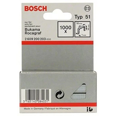 1000 staples 14/10 mm type 51 Power source type: manual Package Dimensions: 8.0 L x 2.8 H x 12.0 W (cm) 2609200203, Weight: 0.22 Pounds, Manufacturer: Bosch