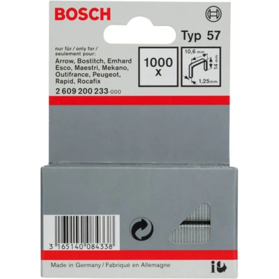 Features: For Tacking Thin Materials For Tacking Thin Materials Easily perform both do-it-yourself and professional applications on thin cardboard, foils, labels, paper Narrow crown enables them to puncture deeply and provide a firm seating with a hardly noticeable staple back Especially suited for tacking thin materials where the spine of the staple must not be pressed into the material The Flat Wire Staples, Type 57, are ideal for a wide range of universal tacking applications and can be used in various materials. They easily perform both do-it-yourself and professional applications on thin cardboard, foils, labels, paper, etc. These staples feature a narrow crown, enabling them to puncture deeply and provide a firm seating with a hardly noticeable staple back. They are especially suited for tacking thin materials where the spine of the staple must not be pressed into the material. The Flat Wire Staples are appropriate for use with tackers from the following brands: Arrow,
