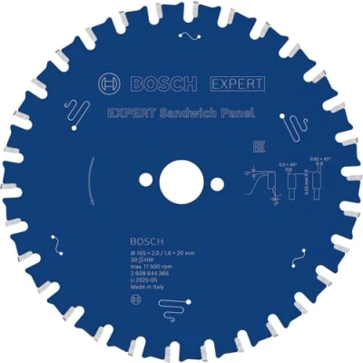 Bosch Accessories Expert for Sandwich Panel 2608644366 Circular Saw Blade (165 x 20 2 mm, Teeth 30, Saw), Diameter 165 mm