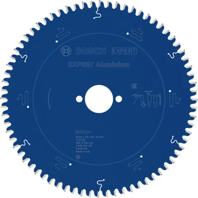 Features: Designed for cutting aluminium Long Life cutting aluminium Exceptional durability is built into accessories with Bosch Carbide Technology. It combines hard and robust tungsten carbide grains with our own advanced manufacturing techniques. Extra coating for increased performance and durability. The coating reduces friction and protects the circular saw blade from heat and corrosion. Bore works with or without reduction rings to fit different sizes When you need to cut aluminium sheets on the construction site, you want a circular saw blade that's sharp, precise, and durable. We designed the EXPERT Aluminium to help you get the job done with ease. The EXPERT Aluminium is a circular saw blade for the jobs you need to get done with your handheld circular saw. It will help you cut through wide aluminium profiles – effectively, time and again. The EXPERT Aluminium features sharpened fine carbide teeth made using Bosch Carbide Technology. This means the circular saw blade lasts