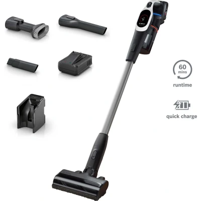 CLEAN BEYOND THE VISIBLE: Thanks to advanced MicroClean technology, the MicroClean sensor detects and captures even microscopic dirt particles that might otherwise be missed, for a truly deep clean BOSCH'S BEST DUST PICK UP: Discover Bosch's superior dust pick-up with the MicroClean brush, achieving over 99.9% efficiency* by capturing even the finest microscopic particles across hard floors, carpets and parquet LESS FREQUENT EMPTYING: The dust compression slider doubles the dust box capacity, reducing emptying sessions by up to 50%** for a more hygienic and effortless disposal experience SENSOR CONTROLLED MICRO CLEAN RING: Illuminates white when surfaces are visibly clean, before changing to blue to indicate when surfaces are truly clean LED DISPLAY with 3 Power Modes: Select from 3 cleaning modes – Turbo, Auto or Eco – on the LED Display to enjoy easy handling and optimum performance INCLUDED ACCESSORIES: 1 x MicroClean Brush with LED lighting, 1 x Soft Furniture Brush, 1 x Short Crevice Nozzle, 1 x Long Flexible Crevice Nozzle, 1 x 3.0 Ah Battery, 1 x Quick Charger, 1 x Docking Station with Charger, Weight: 9.259415004 Pounds, Manufacturer: Bosch