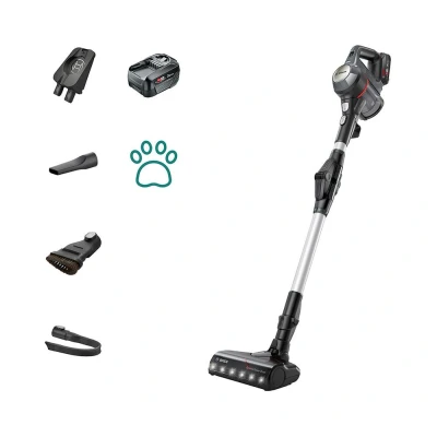 The Bosch TurboSpin motor operates at speeds of up to 66,000 rpm, providing excellent cleaning capabilities for various surfaces. The innovative motorised Brush ensures effective and thorough cleaning across carpets, hard floors, upholstery, and even in your car. The AllFloor DynamicPower brush, combined with integrated LED lights, enhances visibility, allowing you to spot and eliminate dust and dirt more efficiently.