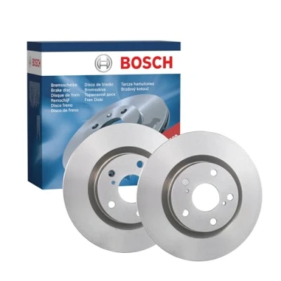 Technical specifications: Diameter 296 mm, thickness 28 mm, vented design for improved heat dissipation, oiled surface and 5-hole configuration for precise fitment Universal Performance: Designed to provide consistent, reliable braking, Bosch brake discs deliver smooth and responsive performance in a wide range of driving conditions High-carbon material: The brake discs are engineered with premium high-carbon cast iron for superior stability, vibration control, and noise dampening Oiled surface: The brake discs are factory-coated with a thin protective oil layer to prevent corrosion during storage and transport Ventilated design: Internal ventilation channels improve air circulation and enable faster heat dissipation during heavy braking, preventing thermal cracks and ensuring consistent performance Scope of delivery: 1 set of 2 discs - Front axle Recommended for Bosch or OE brake pads for balanced braking, compatible with all brake pads - use the automotive parts finder at the top of this page to find the right replacement discs for your car For professional use only: All work should be carried out by trained specialists in qualified workshops