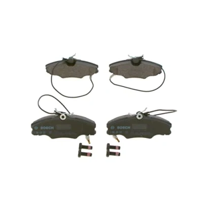 Bosch BP105 Brake Pads Car Front Axle Quality Reduced Noise and Dust ECE R90 Certified Copper Free 1 Set of 4 With Accessories