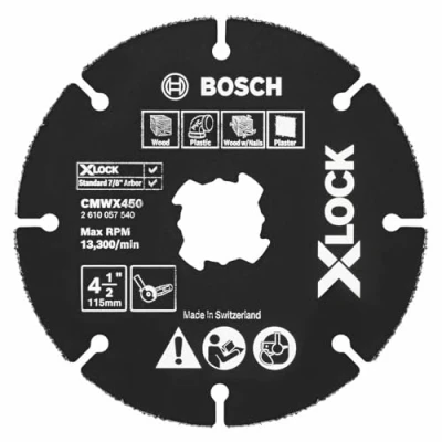 BOSCH CMWX450 4 1/2 in. X Lock Carbide Multi Wheel Compatible with 7/8 Arbor for Applications in Cutting Wood, Wood Nails, Plastic, Plaster