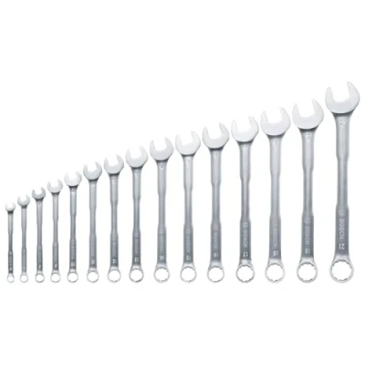 15 durable open and ring end wrenches for top performance and convenience High quality, rust resistant and durable chrome vanadium wrenches with high torque of minimum 60% above ISO standard (according to ISO 1711) Comfortable to hold and use thanks to ergonomic design Convenient organizer for easy storage and portability Scope of supply: 15x Combination Wrenches (6, 7, 8, 9, 10, 11, 12, 13, 14, 15, 16, 17, 18, 19, 21), Organizer, Weight: 3.196702799 Pounds, Manufacturer: Bosch