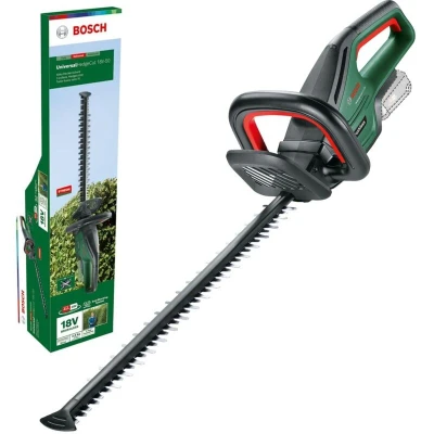 Features: Powerful, lightweight 18V hedgecutter for perfect results on medium-sized hedges Brushless motor: enjoy high power and long service life Bosch-patented Anti-Blocking System cuts thicker branches without jamming Lightweight design reduces user fatigue Excellent results on various medium-sized hedges (branches up to 20 mm) Laser-cut diamond ground blades POWER FOR ALL ALLIANCE: 1 battery, 10+ brands, 150+ products The UniversalHedgeCut 18V-50 with brushless motor manages to combine power and easy handling on various medium-sized hedges. Lightweight and comfortable to handle for extended use. Bosch's cordless 18V UniversalHedgeCut 18V-50 with brushless motor delivers high power, resulting in a significantly longer service life. Its lightweight design reduces strain, making long hours of hedgecutting enjoyable. The UniversalHedgeCut 18V-50 is the perfect choice for trimming medium-sized hedges such as conifer, privet, laurel, and beech with branch thicknesses of up to 20 mm.