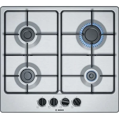 Gas hob with front handles: for more convenient control of cooking zones from the front Maximum stability thanks to steel mesh Bridge handles: ergonomic control. Elegant stainless steel surface, Weight: 15.43235834 Pounds, Manufacturer: Bosch