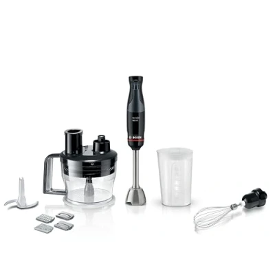 Bosch ErgoMaster Series 4 MSM4B670GB Pressure Controlled Speed 2 in 1 Hand Blender with Mini Food Processor, Beaker and Whisk, Stainless Steel Blade, 1000 W Motor, Black
