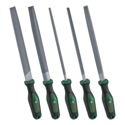 Features: Superior file set for efficient deburring of metal 5-piece file set: flat, half-round, round, square and triangular steel files Efficient metal filing with medium roughness stroke 2 cut file blades Robust files made of high-quality hard carbon steel Optimal force, tactile control via ergonomic softgrip handles with thumb indentation Practical hanging hole for easy file storage The Bosch 5-piece file set 200mm is the go-to DIY collection for metalwork. This versatile kit contains hard carbon steel files with medium-grade roughness that make light work of deburring metal and smoothing down wood. Keep a Bosch 5-piece file set 200mm in the toolshed, especially for metal crafting. This high-quality set is made up of 5 robust files – flat, half round, round, square and triangular – each one made of hard carbon steel. Tasks like deburring are completed efficiently thanks to stroke 2 cut blades with medium-grade roughness. These files feature ergonomic softgrip handles with
