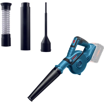 General description The BOSCH GBL 18 V-120 is a powerful cordless blower designed for quick cleanup tasks. With an impressive air speed of up to 270 km/h and a maximum airflow of 120 m³/h, it is ideal for tidying up job sites, cleaning drill holes, and various other applications. Its compact and balanced design ensures easy handling and control. Technical specifications Max Airflow: 120 m³/h Max Air Speed: 270 km/h No Load Speed: 0 to 17,000 rpm Battery Voltage: 18 V Weight: 1.1 kg (excluding battery) Running Time: Speed I: 9 min/Ah, Speed II: 5 min/Ah Battery Type: Lithium-ion Compatibility and accessories Compatible with all Bosch Professional 18 V batteries and chargers (Professional 18V System) Also compatible with AMPShare, the multi-brand battery alliance Includes 4 accessories: Nozzle, Extension Tube, Deep Hole Nozzle, Dust Collection Tube Usage The BOSCH GBL 18 V-120 is perfect for a variety of tasks, including: Tidying up job sites Cleaning drill holes General outdoor cleanup
