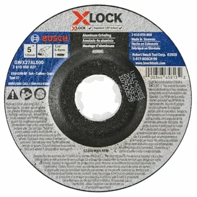 Bonded abrasive wheel with the X-LOCK mount design – offers a faster, fixed mount and high-quality Aluminum Oxide grit Resinoid bonds – specially formulated with multiple layers of stranded fiberglass and Aluminum Oxide grit for speed and durability X-LOCK wheel change – features snap-on mounting and a wheel-release lever on grinder for change-out up to five times faster Tool-free disc swap – the wheel mounts properly without the need for a spanner wrench or flange nuts for no losable parts Backward compatible – Bosch X-LOCK abrasive wheels are backward compatible with standard 7/8 In. arbor mounts