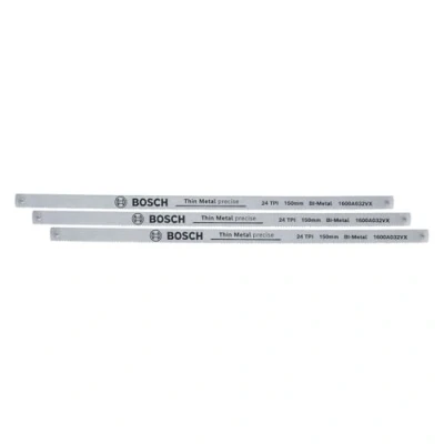 AmazonFine saw blades with 24 TPI for precise and clean cuts in metal, plastic and soft wood Sharp teeth with a hardness of 62-68 HRC for excellent cutting performance Made of robust bi-metal for a high level of durability Universal brand fit - Ideal for the Bosch Hacksaw 150mm and also other Mini Hacksaws Scope of supply: 3x Hacksaw Blades 150mm 24 TPI, Weight: 0.02645547144 Pounds, Manufacturer: Bosch