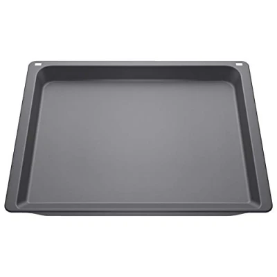 Accessories for ovens Universal pan Colour: anthracite Non-stick ceramic coated universal pan: easy to clean thanks to non-stick coating Made in Germany. Item dimensions (without packaging) H x W x D (cm): 3.8 x 45.5 x 37.5. Please check the compatibility of this accessory with your Bosch large device on the Bosch homepage