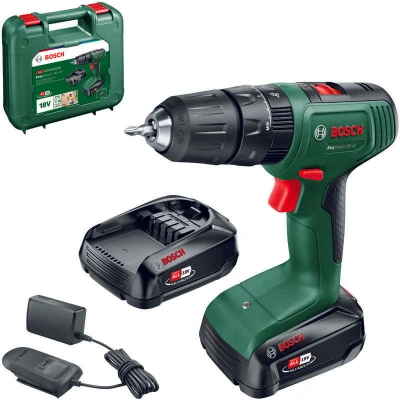 ManoManoGeneral description The BOSCH DIY EASYIMPACT 18V-40 is a versatile 18V combi drill designed for both drilling and screwdriving tasks. It features a 13mm keyless chuck for quick and easy bit changes, making it ideal for DIY enthusiasts. Technical specifications Voltage: 18V Chuck size: 13mm Max torque: 40Nm Batteries: 2 x 1.5Ah Li-ion Speed settings: 2 speed / variable / reversing Other information Includes a carry case for easy storage and transport.