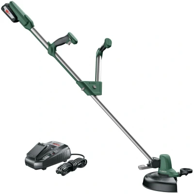 General description The BOSCH UniversalGrassCut 18V-26 is a versatile and efficient grass trimmer designed for easy handling and effective grass cutting. Technical specifications Voltage: 18V Battery: 1 x 2.5Ah Li-ion Cutting diameter: 26cm Speed: Single speed Other information Includes a charger