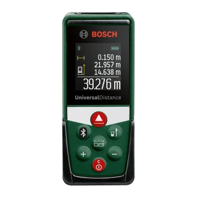 CurrysGood to know - Measure up to a 40 m distance with the Bosch UniversalDistance 40C Digital Laser - This Bluetooth-enabled device lets you transfer and save your measurements to your smartphone with the Bosch app - Want to put up wallpaper? Calculate the area easily with the Square-Metre function - You can add or subtract a measurement, find out the minimum and maximum distance and even the volume of a space - The results are displayed on a coloured display for clear readability