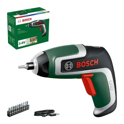 This Bosch cordless screwdriver is your go-to for all sorts of DIY and household tasks. With a 3.6V lithium-ion battery, it can handle up to 190 screws per charge. Perfect for fast furniture assembly and dismantling. The LED PowerLight illuminates dark corners, giving you clear visibility and shadow-free working. And its USB interface and micro USB cable let you recharge it conveniently in its box.Good to know- It comes with 10 standard screwdriver bits, ready for wood, plastic and plaster work- The magnetic bit holder means you can work securely in awkward spots- Its lightweight and compact design lets you tackle any task without getting tired arms
