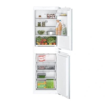 With its combination of efficient technology and practical features, the Bosch KIN85NFE0G Series 2 Built-in Fridge Freezer is a reliable addition to any modern kitchen.
