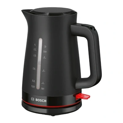 CONTEMPORARY STYLING: This high-quality, 3000 W cordless electric kettle adds a touch of elegance to any kitchen with a sleek matte finish, glossy details and convenient cord storage FAST BOIL: With easy-to-read cup indicators, a cup of tea has never been quicker. Simply fill your kettle up with the amount of water you need and boil one cup in under a minute*. *cup is equal to 250ml ULTIMATE CONVENIENCE: Open the lid with one touch to easily fill the kettle with water through the conveniently large opening that ensures hassle-free cleaning and no accidental spills LIMESCALE FILTER: The removable limescale filter is easy to clean and effectively prevents limescale from contaminating hot drinks, for a pure taste every time ITEMS DELIVERED: 1 x Bosch MyMoment TWK3M123GB kettle with 1.7 L capacity, 3000W, Fast Boil, triple safety feature, one-hand operation, cord storage, limescale filter and large opening, in black, Weight: 3.3289801562 pounds, Manufacturer: BSH Home Appliances