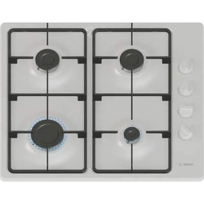 This Bosch Series 2 gas hob's a solid choice for your kitchen. The continuous cast-iron pan supports keep your pots steady during cooking. The sword knobs are easy to grip, even when your hands are a bit greasy. Plus, the wider distance between the knobs makes cleaning a breeze. And the gas safety cut-off turns off the gas if a flame goes out. That gives you more peace of mind in the kitchen.Good to know- The white enamelled steel surface looks modern- It's Biomethane-ready for a renewable, natural alternative- Automatic ignition makes it quick and easy to lightGAS INSTALLATION: This product requires installation by a qualified gas safe engineer, such as one of our Tech Experts (available in the UK only).ELECTRICAL INSTALLATION: This product requires professional installation to a 13 Amp fused spur by a qualified installer, such as one of our Tech Experts.