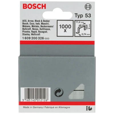 Bosch Professional 1000x Fine Wire Staple Type 53 (Natural Materials, Textiles, Carton, 11.4 x 0.74 6 mm, Accessories Tacker, Gun)