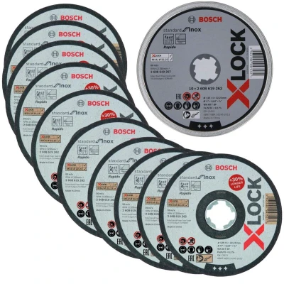 Bosch Professional 10x Straight Cutting Disc Standard (for Inox, Stainless Steel, X LOCK, Ø 125 mm, Bore 22.23 Thickness 1 Accessories for Angle Grinders) (Packaging May Vary)
