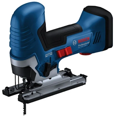 General description The Bosch GST 18V-125 S Professional Jigsaw with barrel grip offers an optimal price-performance ratio, making it a reliable solution for various cutting applications. Its robust design and powerful brushless motor enhance tool longevity and runtime, while its simple design focuses on essential functions such as the SDS blade holder, LED light, 4-stage pendulum, dust blower, and speed selection. This cordless jigsaw excels in making curved and cross cuts in solid wood, chipboard, and wood composites, as well as in thicker or harder materials. Technical specifications Model: GST 18V-125 S Type: Cordless Jigsaw Motor: Brushless Baseplate adjustment: Up to 45° for bevel cuts Included blade: 1 x T 144 D Speed for Wood Jigsaw Blade Included accessories: 1 x Anti-splinter Guard, 1 x Dust Extraction Set Compatibility and accessories Compatible with all Bosch Professional 18V batteries, including ProCORE18V batteries Compatible with Bosch Professional 18V chargers