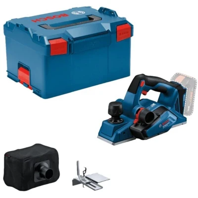 Bosch Professional 18V System Cordless Planer GHO 26 (brushless Motor, incl. Dust Bag, Parallel Guide, 1x Wood Razor Blade, L BOXX)