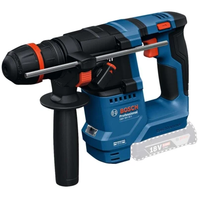 Bosch GBH 18V-18 X Professional Rotary Hammer with the ONECHUCK, a single chuck that can fit SDS-plus, cylindrical and hex dill bits for your wide range of applications. KickBack Control ensures that the motor immediately stops when the drill gets jammed in material, prevent common kickback injuries. Vibration Control dampens vibrations to reduce hand-arm numbness while working. A single battery charge (NOT supplied) is enough to drill up to 50 holes in concrete , thanks to its robust brushless motor with continuous power output and constant speed. The Bosch GBH 18V-18 X Professional rotary hammer is ideal for tradespeople such as cabinet installers, carpenters, glaziers, and facility managers who work with concrete, wood, and metal. Comes as a Bare Unit, NO battery or charger. Supplied with: 1 x Auxiliary Handle and 1 x Depth Gauge. Specifications: Tool Holder: SDS plus, Cylindrical (shaft max. Ø 10mm), Hex (shaft max. Ø 10mm) No Load Speed: 900/min. Impact Rate: 5,000/bpm Impact