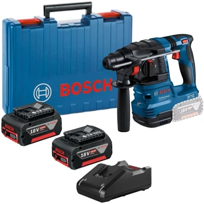 Included in the package are the GBH 18V-22 hammer drill, two GBA 18V 4.0Ah batteries, a GAL 18V-40 charger, and a convenient carrying case. The total weight of the kit is approximately 5.07 pounds, providing a portable solution for various job sites.