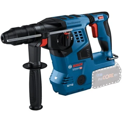 AmazonThe new GBH 18V-28 CF is ideal for hammer drilling in concrete, stone, and masonry; powerful brushless motor delivering 3.3 J impact energy from its proven striking mechanism User protection features: thanks to Vibration Control, KickBack Control, and compatibility with the GDE 18V-16 for dustless drilling The easy-to-read HMI: displays the tool status and allows the user to choose between three different work modes (Auto, Favorite, Soft), quick-change chuck reduces tool downtime AMPShare: Batteries and chargers are fully compatible with the Bosch Professional 18V System as well as many other tools from brands in the AMPShare battery partnership Items Included: GBH 18V-28 CF, Aux; handle, Grease tube, Quick Change Chuck, L-BOXX Inlay, L-BOXX 238, Weight: 7.4516244556 pounds, Manufacturer: Bosch