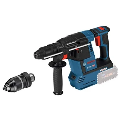 AmazonDelivers 2.6 J of impact energy for fast drilling and high chisel removal performance KickBack Control and Electronic Precision Control for better tool handling and increased user protection Optional GDE 18V-16 Professional dust extraction unit integrates with the hammer for a self-contained HEPA dust solution Universal rotary hammer with quick-change chuck in the SDS plus cordless category Lieferumfang: Auxiliary handle (2 602 025 141);Cardboard box;Depth stop 210 mm (1 613 001 010);Machine cloth;Quick change chuck 13 mm (2 608 572 212);SDS plus quick-change chuck (2 608 572 213), Weight: 6.3052206932 pounds, Manufacturer: Bosch