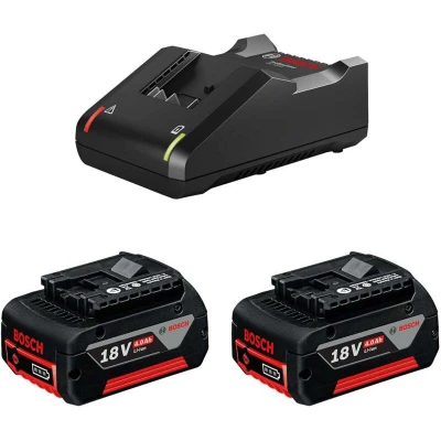 18 V 4.0 Ah battery with extended runtime for all 18 V class tools Extremely fast charging time for all 18 V rechargeable batteries, for instance an 18 V/4.0 Ah standard rechargeable battery can be charged to 80% in just 48 minutes Compatible since 2008: All of our rechargeable batteries are compatible with new and existing Bosch Professional tools in the same voltage class Professional 18V System. Ultimate performance. Maximum freedom. All rechargeable batteries are compatible with new and existing Bosch Professional tools in the same voltage class. Items included: 2x GBA 18V 4.0Ah batteries, GAL 18V-40 charger, cardboard box, Weight: 4.40924524 pounds, Manufacturer: Bosch Professional