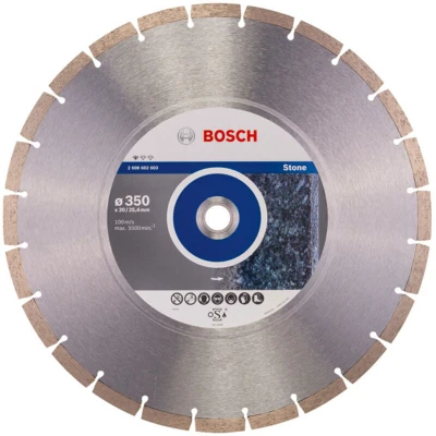 Features: Reliable Cuts in Stone Standard for Stone Diamond Cutting Disc provides reliable cuts in all types of stone With 25.4 mm bore, fits 20 mm bores with reduction rings High-quality standards are ensured by Bosch diamond competence centre in Switzerland The Standard for Stone Diamond Cutting Disc provides reliable cuts in all types of stone. Its optimised diamond matrix delivers solid results thanks to the disc's high-quality standards that are ensured by the Bosch diamond competence centre in Switzerland. Use this disc for cutting all sorts of stones. It is compatible with table saws.