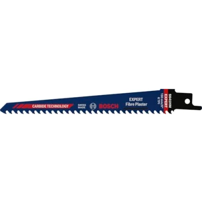 ManoManoGeneral description The Bosch EXPERT Fibre Plaster S641HM Reciprocating Blade is an essential tool for tradesmen needing to cut cement fibre board and drywall. It features Bosch Carbide Technology for exceptional durability, a tapered tip for accessing tight spaces, and a thick gauge blade for added robustness and stability. Technical specifications Blade Length: 150mm Teeth per Inch: 6 TPI Compatibility and accessories Fits all S-shank reciprocating saws