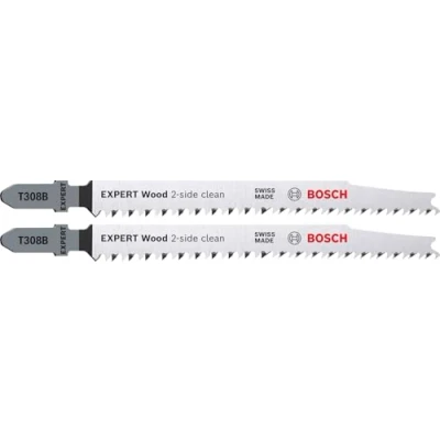 Very clean finish at the top and bottom Tear-free cuts with 2-side clean geometry. Fits all T-shank jigsaws Ideal for tear-free straight cuts Cuts solid wood up to 50mm for example for making furniture without sanding. Box contents: Bosch Expert 'Wood 2-side clean' T 308 B jigsaw blade, 2 pieces, Weight: 0.0 lbs., Manufacturer: Bosch