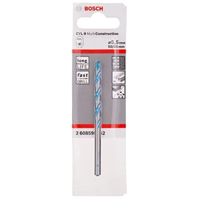 Bosch Professional 2608596052 CYL 9 Multi Purpose Drill Bit, 5.5mm x 50mm 85mm, Silver