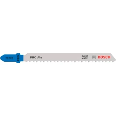 AmazonDesigned for cutting aluminium Highly effective for metalworkers: Long Life Fits all T-shank jigsaws For long-lasting cutting of aluminium and other non-ferrous metals, eg aluminium sheets between 3 and 15 mm thick, pipes, and profiles of up to 25 mm diameter Scope of delivery: Bosch PRO Alu T127D Jigsaw Blade, 100 mm, 5 pcs, Weight: 0.01 Pounds, Manufacturer: Bosch