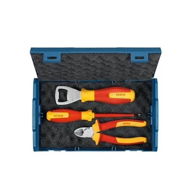 VERSATILE: Versatile set of 2 tools and 1 bottle opener for everyday tasks on the jobsite. ROBUST AND DURABLE DESIGN: All 3 tools are very durable due to robust materials such as chrome vanadium or S2 steel. SAFE WORK: The 2 VDE hand tools are certified according to DIN EN/IEC 60900. COMFORTABLE AND CONVENIENT: Due to 2k soft grips and superior ergonomic designs, working with these tools is extremely comfortable and convenient. INCLUDED COMPONENTS: 1x VDE screwdriver (PH1), 1 x VDE diagonal side cutter (160mm) and 1 x bottle opener, L-Boxx Mini, Weight: 1.4109584768 pounds, Manufacturer: Bosch Professional
